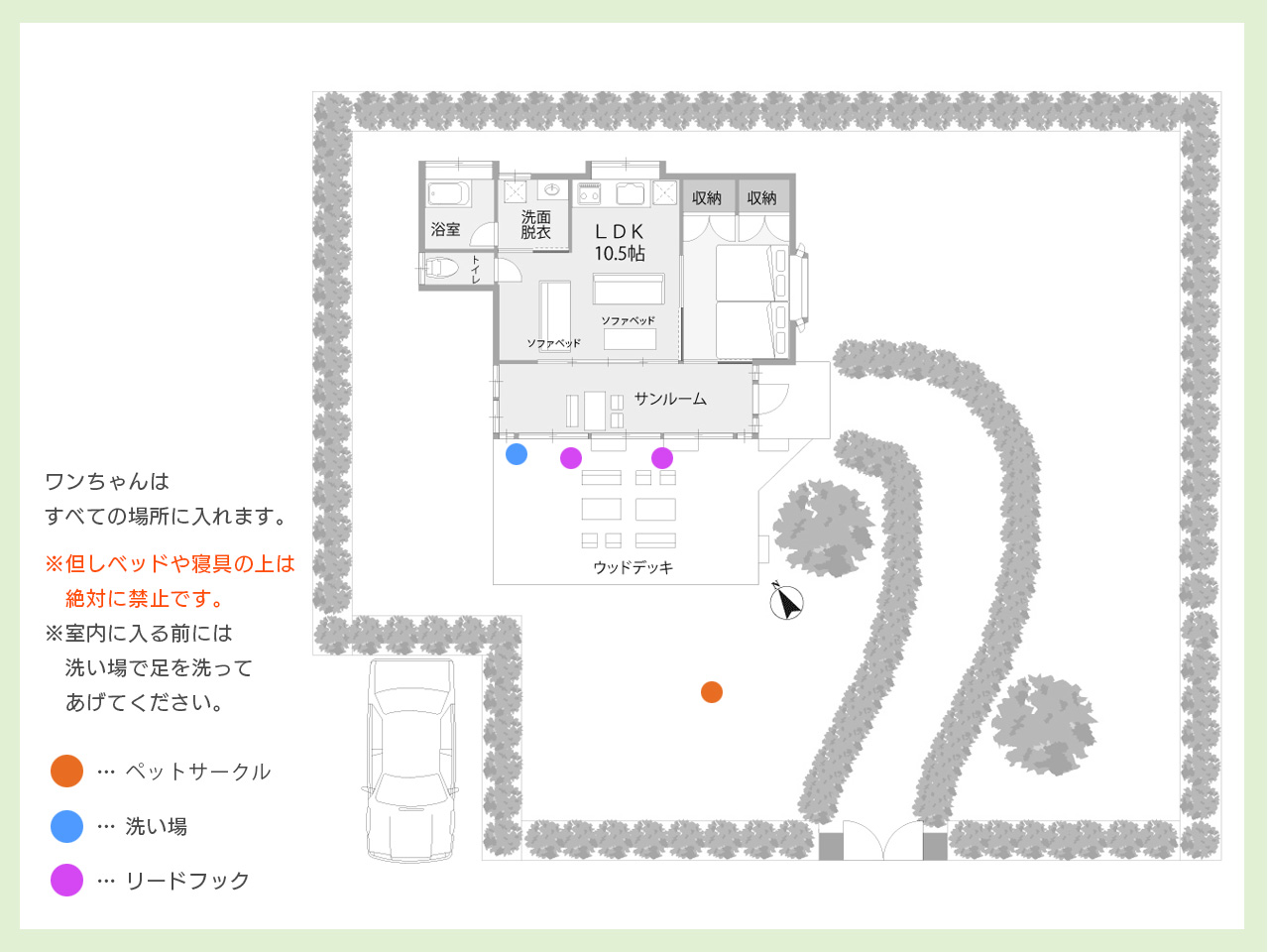 *室内のワンちゃん活動エリアはフローリングのみです。