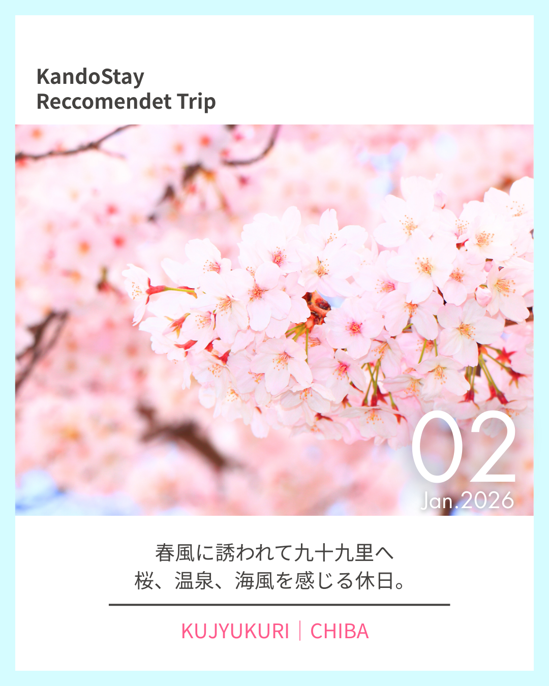KandoStay Recommended Trips |02.春風に誘われて九十九里へ 桜、温泉、海風を感じる休日。