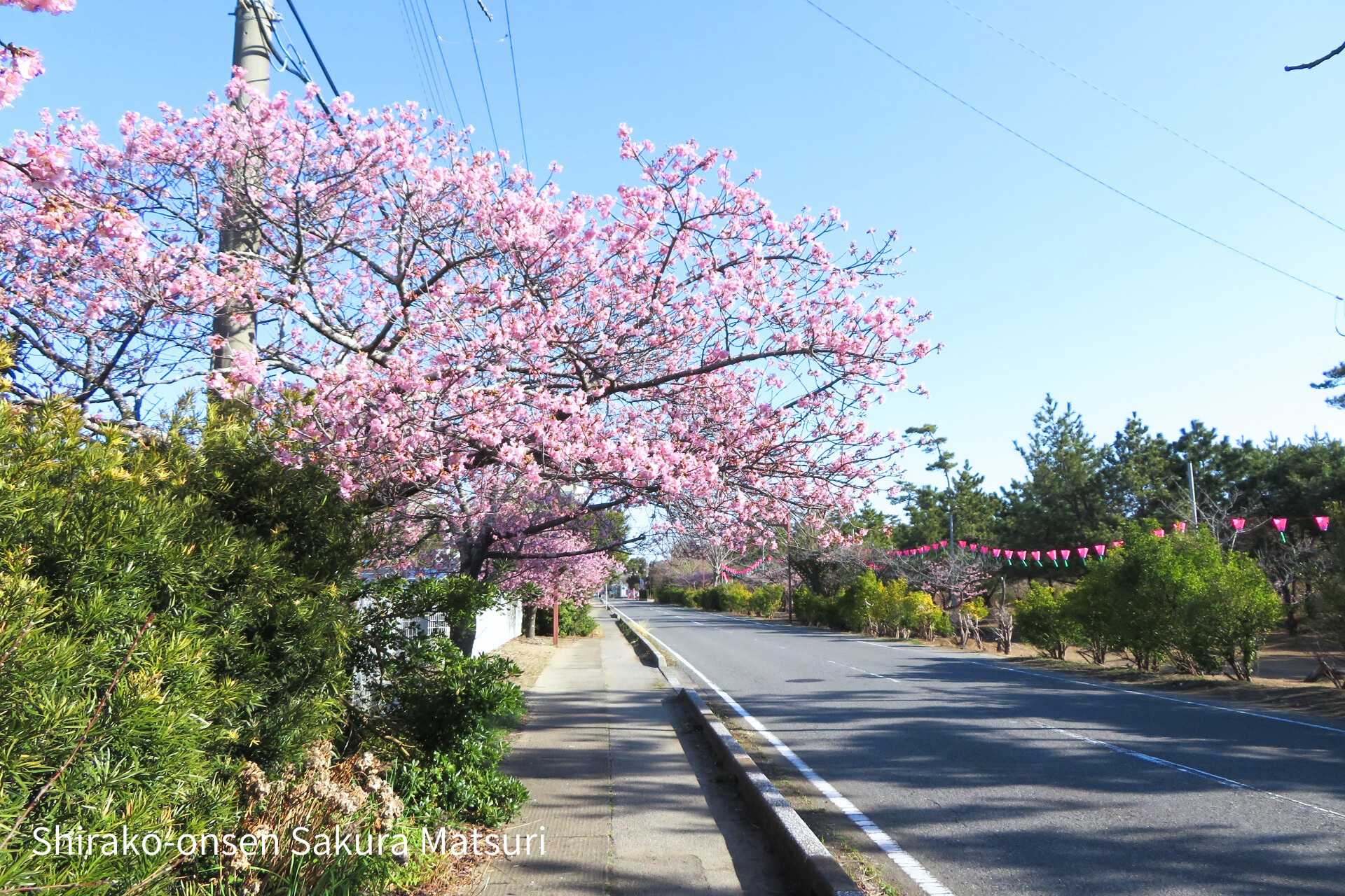 県道30号線沿い(海岸沿いの県道)に植えられた約500本の早咲きの「しらこ桜」が一足早い春を届けてくれます。